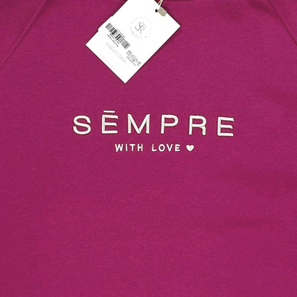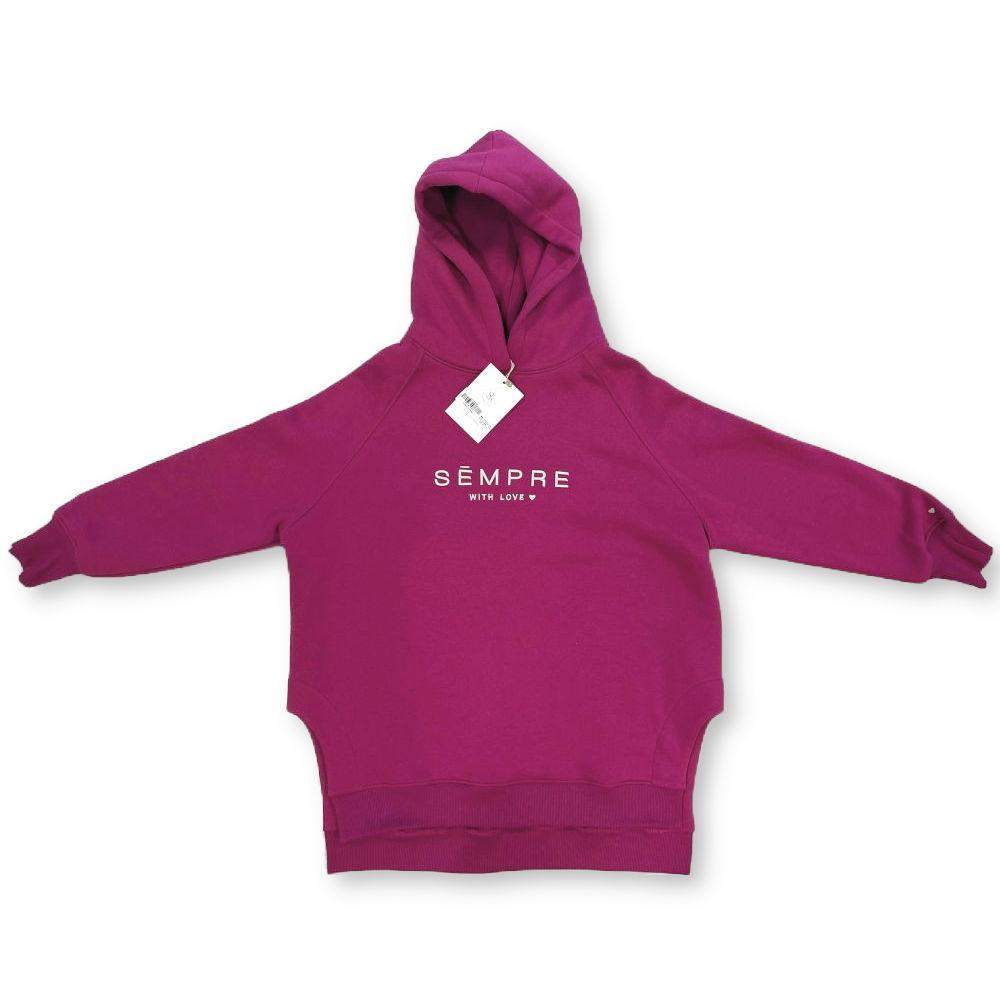 Bluza damska bawełniana Sempre Ruby Fuksjowa. Z kapturem. Na bokach delikatne zaokrąglone rozcięcia. Na przodzie haft, na rękawie wyhaftowane serduszko.