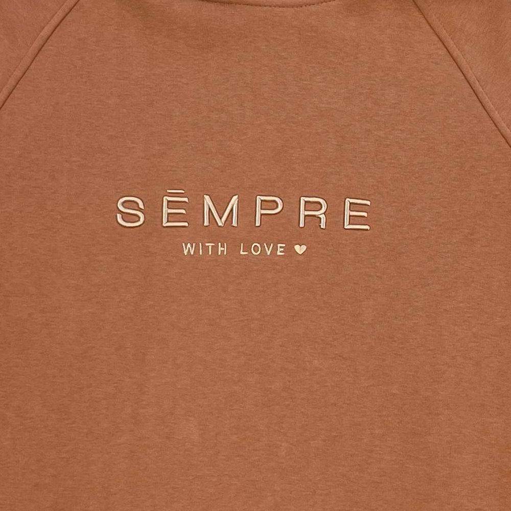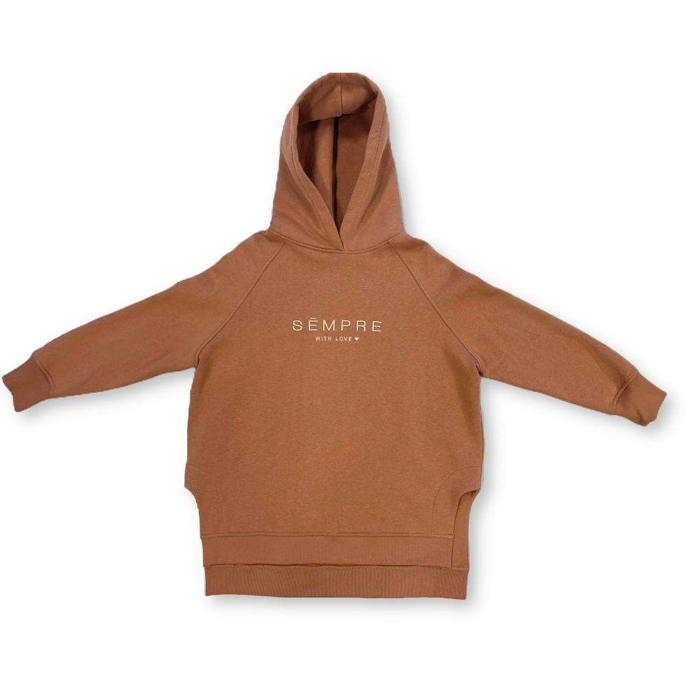 Bluza damska bawełniana Sempre Ruby Miedziana. Z kapturem. Na bokach delikatne zaokrąglone rozcięcia. Na przodzie haft, na rękawie wyhaftowane serduszko.