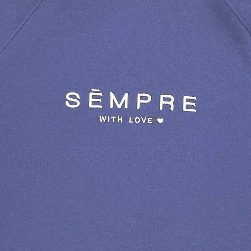 Bluza damska bawełniana SEMPRE Ruby Niebieska. Z kapturem. Na bokach delikatne zaokrąglone rozcięcia. Na przodzie haft, na rękawie wyhaftowane serduszko.