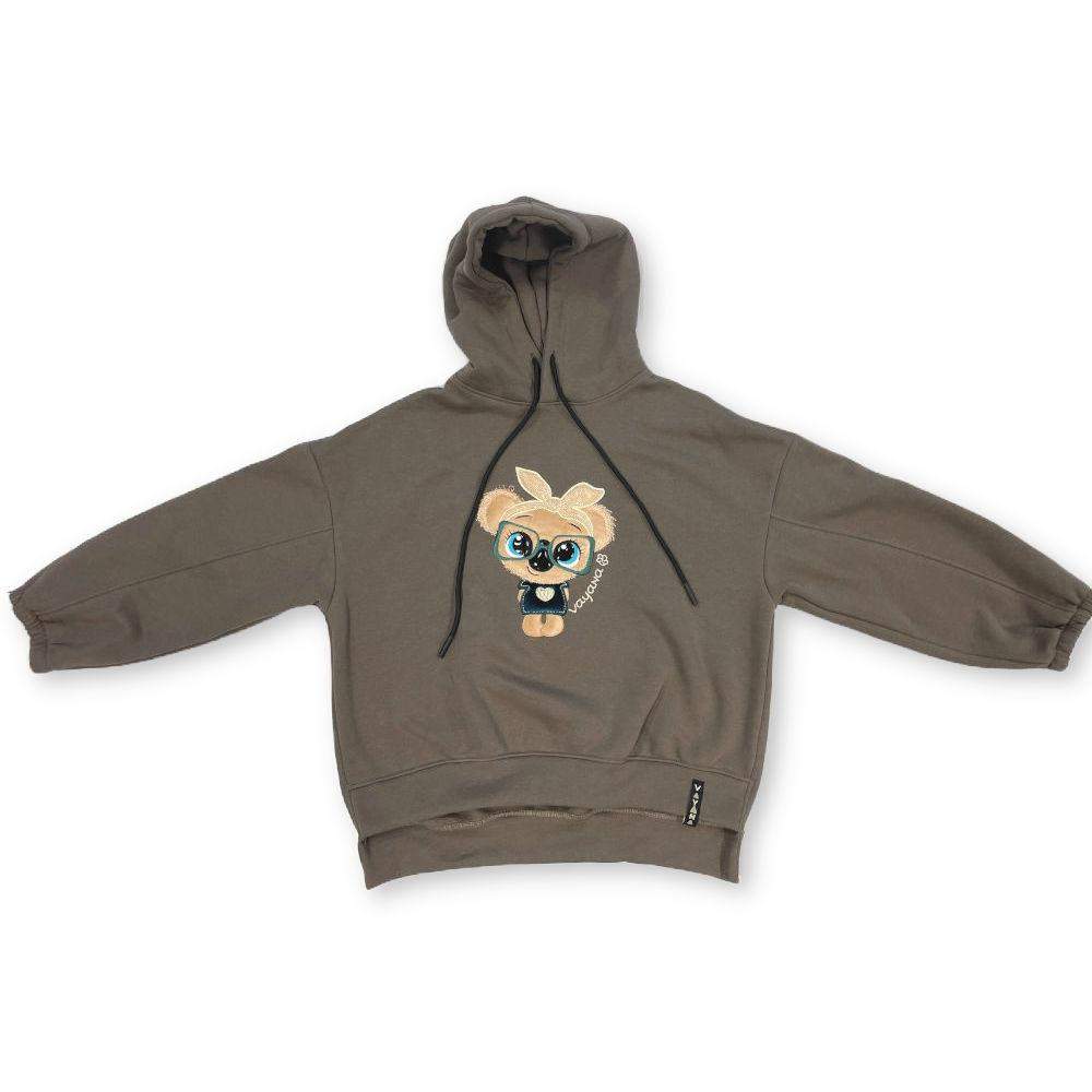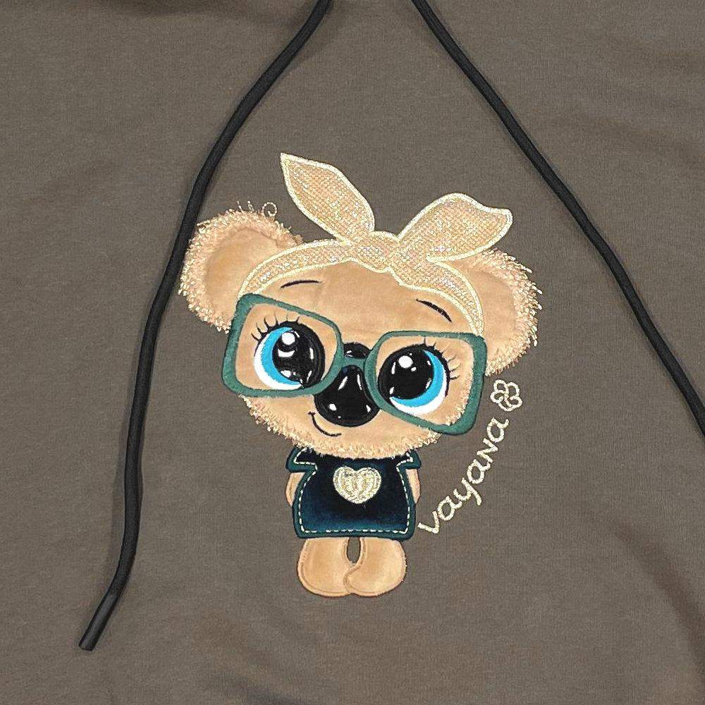 Ocieplana bluza damska Vayana Koala Brązowa to styl, jakość i przytulne ciepło. Wyprodukowana w Polsce, z materiałów klasy premium, zachwyca oryginalnym designem i dbałością o szczegóły. Urocza aplikacja z motywem zwierzątka na przodzie nadaje jej lekko humorystycznego, a zarazem unikalnego charakteru.