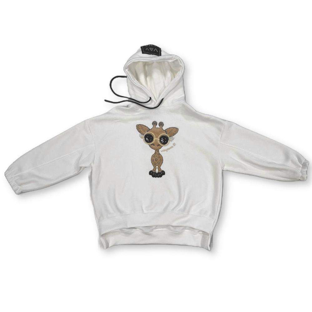 Ocieplana bluza damska Vayana Żyrafa Śmietankowa to połączenie stylu, jakości i przytulnego ciepła. Wyprodukowana w Polsce, z materiałów klasy premium, zachwyca oryginalnym designem i dbałością o szczegóły. Urocza aplikacja z motywem zwierzątka na przodzie nadaje jej lekko humorystycznego, a zarazem unikalnego charakteru.